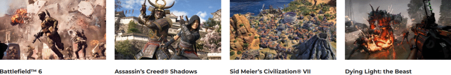 Games to choose from: Battlefield 6, Assassin’s Creed Shadows, Sid Meier’s Civilization VII, and Dying Light: The Beast !
