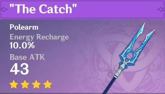 - The Catch – This weapon increases Thoma’s Elemental Burst Damage by 16% and his Elemental Burst CRIT Rate by 6%.